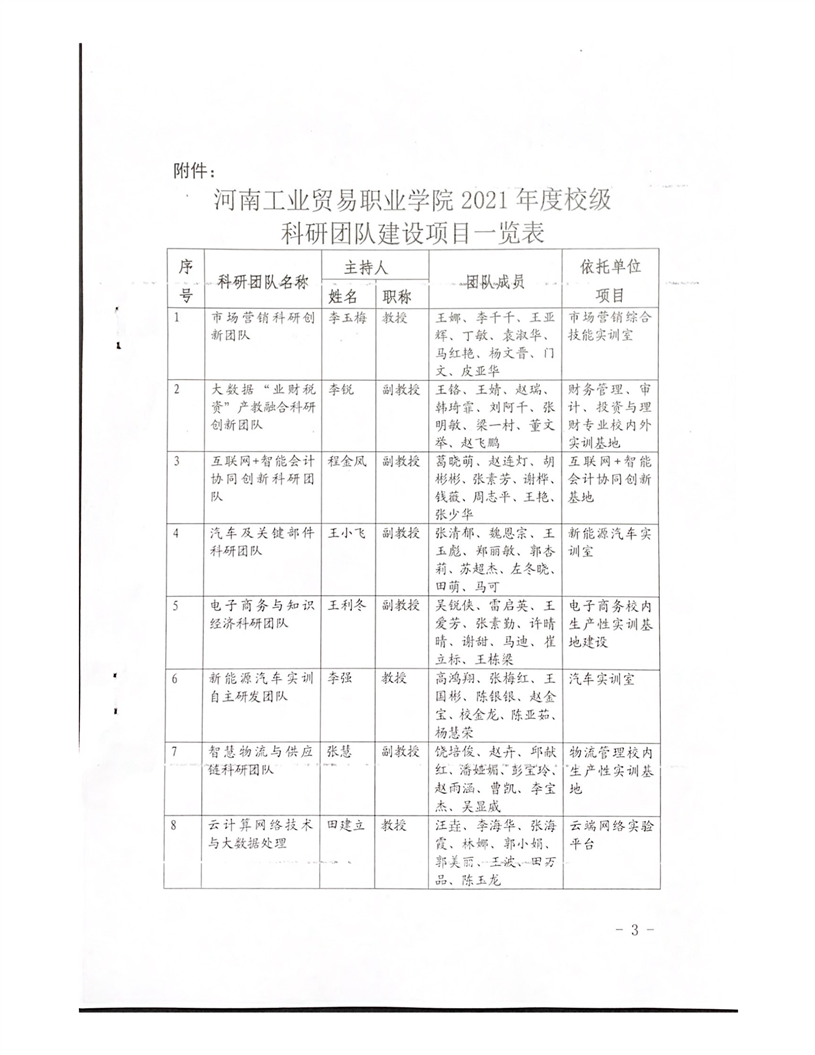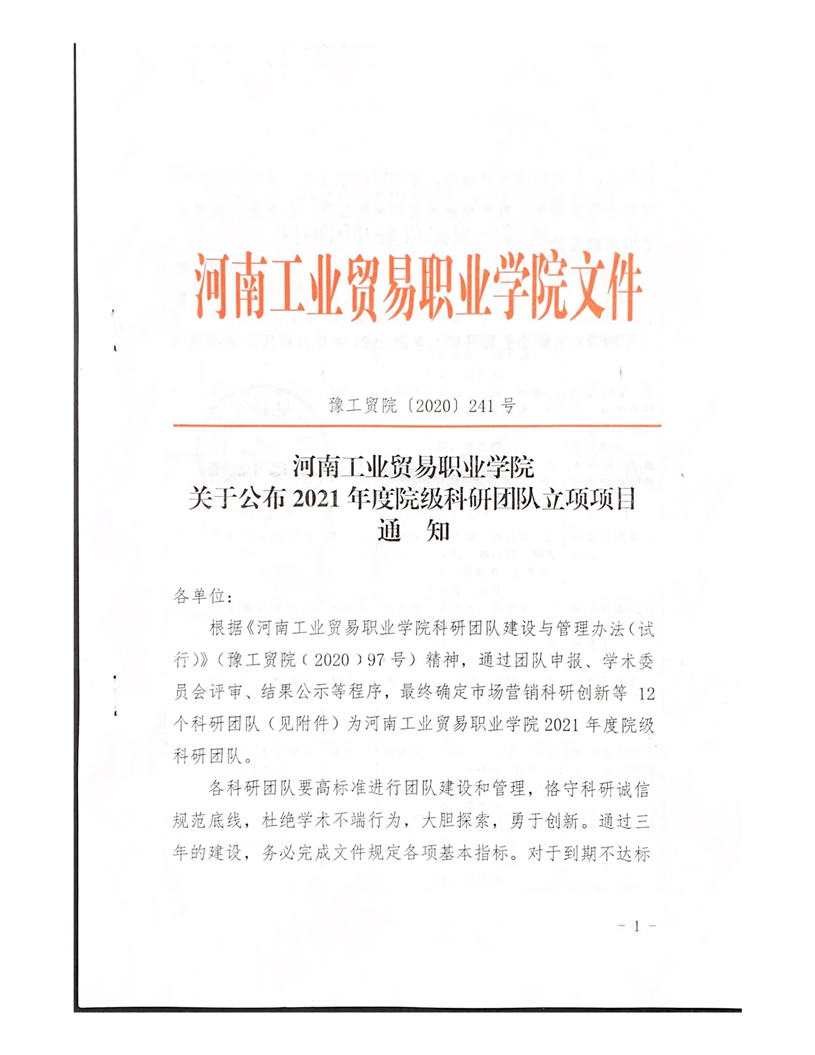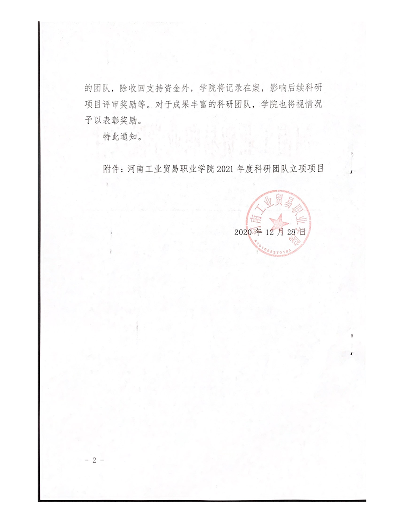 河南工业贸易职业学院关于公布2021年度院级科研团队立项项目通知