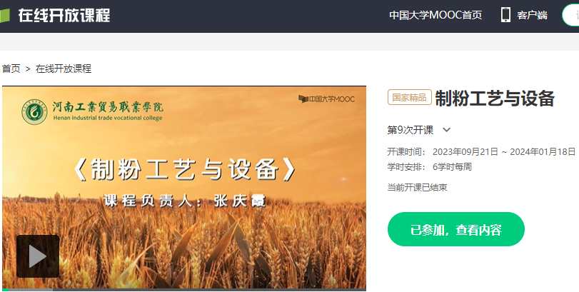 制粉工艺与设备国家级精品在线开放课程
