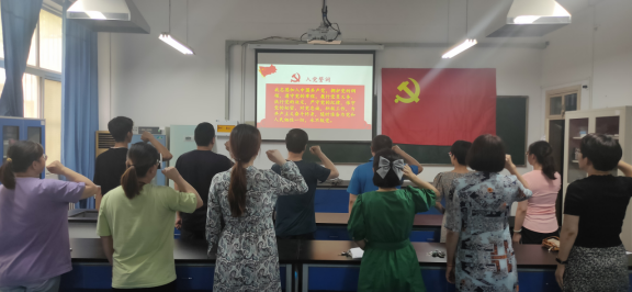 组织上入党一生一次,思想上入党一生一世。全体党员同志要以这次重温入党誓词活动为新的起点,切实把思想和行动统一到中央、省、市委的要求和镇党委的决策部署上来,立足岗位,扎实工作,开拓创新,乐于奉献,争先创优,以坚定的理想信念、崭新的精神风貌、饱满的工作热情、坚强的党员意志,投入到践行党的宗旨伟大实践中去,为加快我校“双高校”建设做出新的更大贡献。
