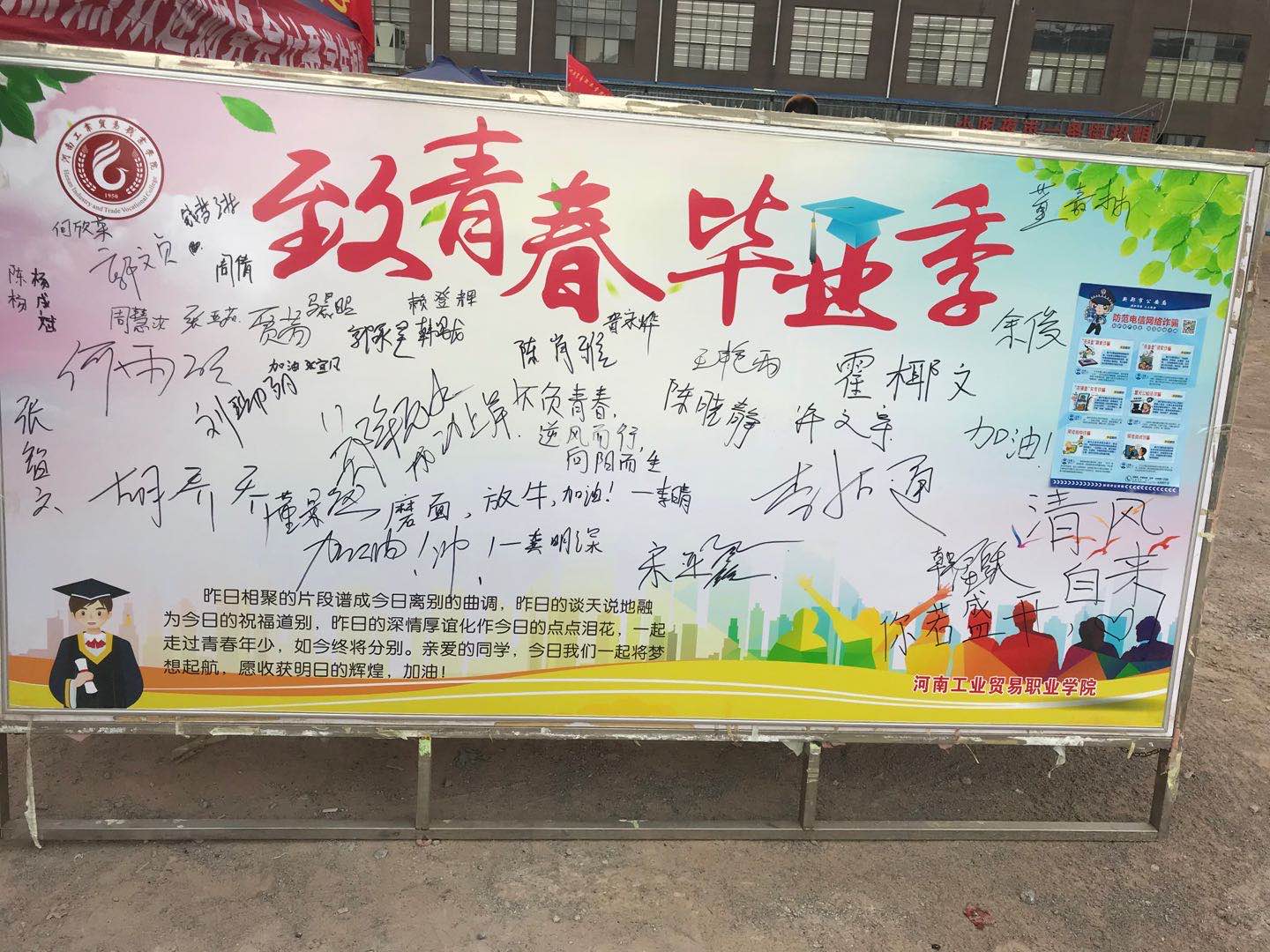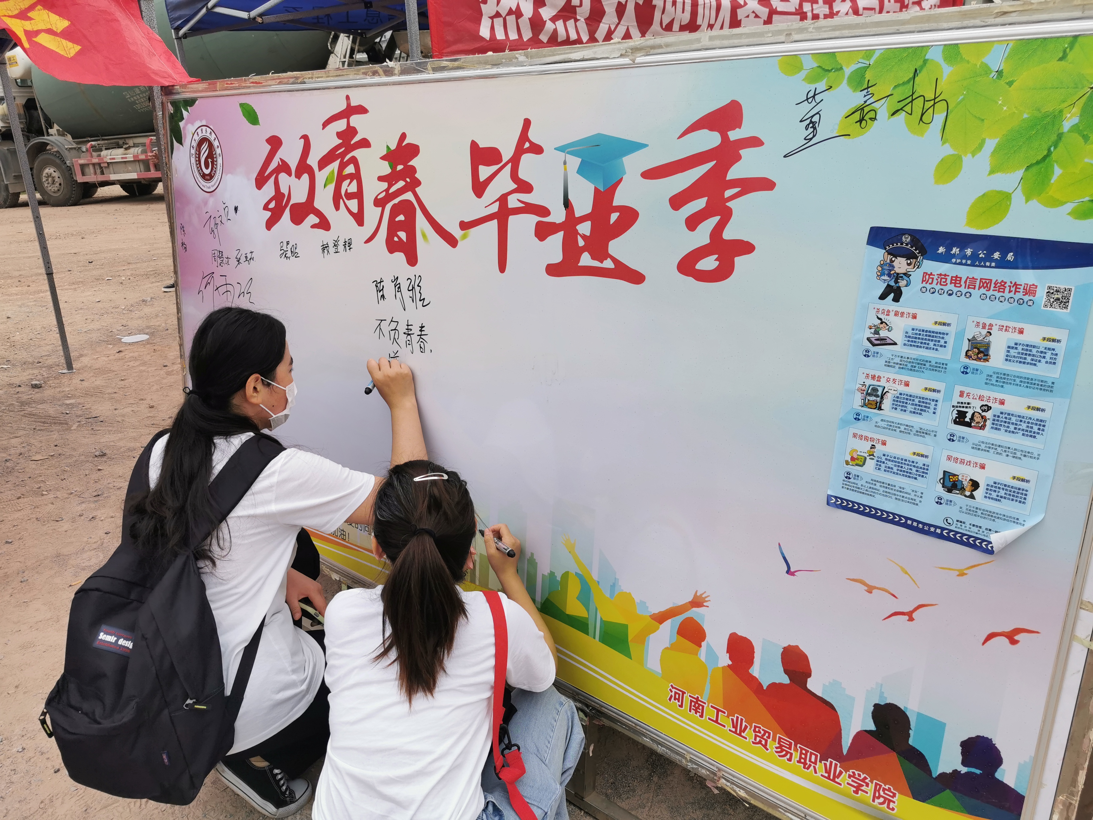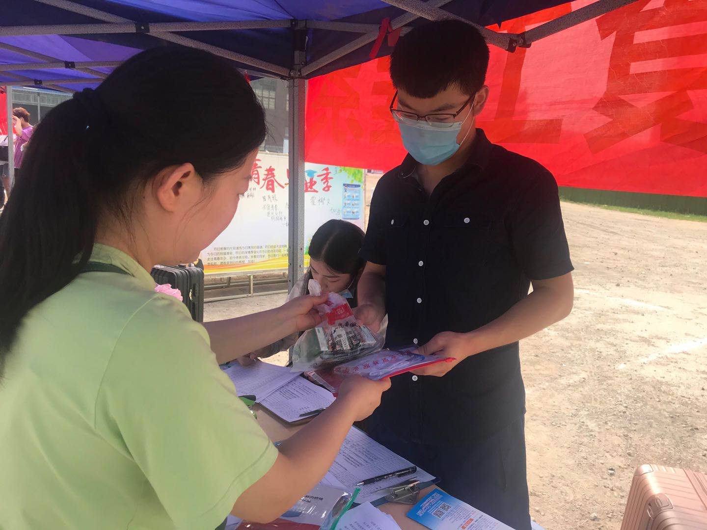 在校内接待点,返校学生们在学校留言板上签名并留下自己的感言。我系教师卢宁还自费为学生们买来风油精和仁丹等防暑药品,发放到学生手中,叮嘱学生做好防暑降温措施。