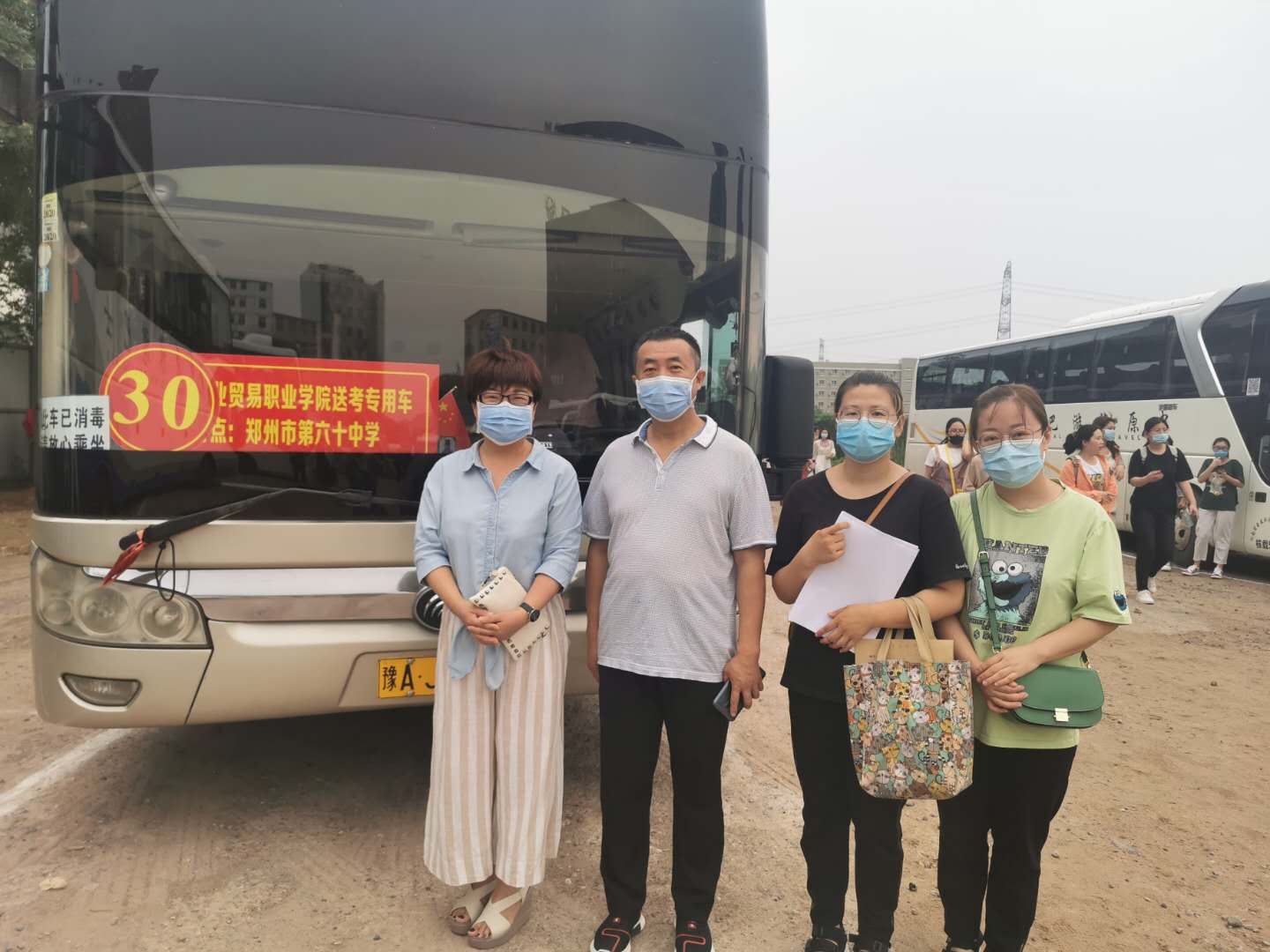 在紧张备战6天之后,7月9日早上6点,系主任张育辉、副主任郭天松、我系教师到校将学生送到送考车前,对接并安排考生乘车。清点人数、核查准考证、交代注意事项、引导学生有序乘车,叮嘱每一个环节送考教师都必须认真负责并全程陪同,为考生们鼓舞打气,做好后勤保障工作。我系教师郭洁、牛芳芳还跟随送考车辆,将学生平安送到考场,考试结束后又将学生安全送回学校。