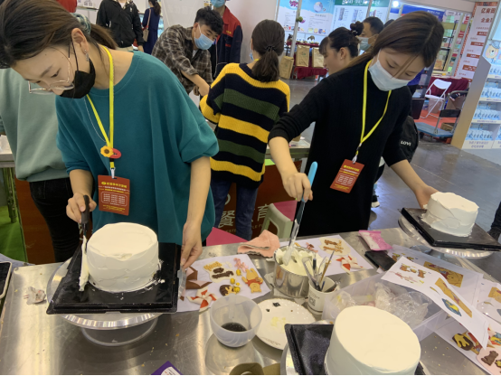 与裱花师沟通交流,“初生牛犊不怕虎”,同学们现场动手制作蛋糕。
