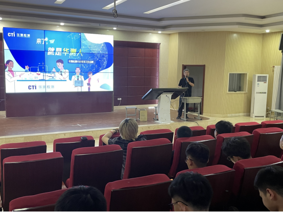 河南华测秦学磊副总经理,人力、检测实验室负责人等从公司概况、企业文化、企业员工培养模式、企业目前的发展状况及发展前景、岗位需求等,与同学们进行了分享。互动环节,同学们就关心的专业对口、企业所需求的人才素质、公司发展平台与机会等问题,与企业负责人进行了互动交流。企业负责人一一答疑,希望同学们都能实现目标,努力奋斗。宣讲会场面气氛活跃,企业直接掌握学生情况,直面学生最关心的薪资待遇、晋升渠道、未来发展等问题,分享自己工作经验以及多年心得体会,为企业培养合适的员工,让学生找到适合的就业岗位架起桥梁。