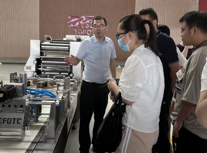 8月31日上午,粮食工程学院副院长张作勇、党总支副书记卢宁、食品工程教研室主任刘艳群、食品专业课教师吴翠彦、段秋虹、王腾飞、王同婷、黄寅楠一行来到中原集团多福多食品有限公司。