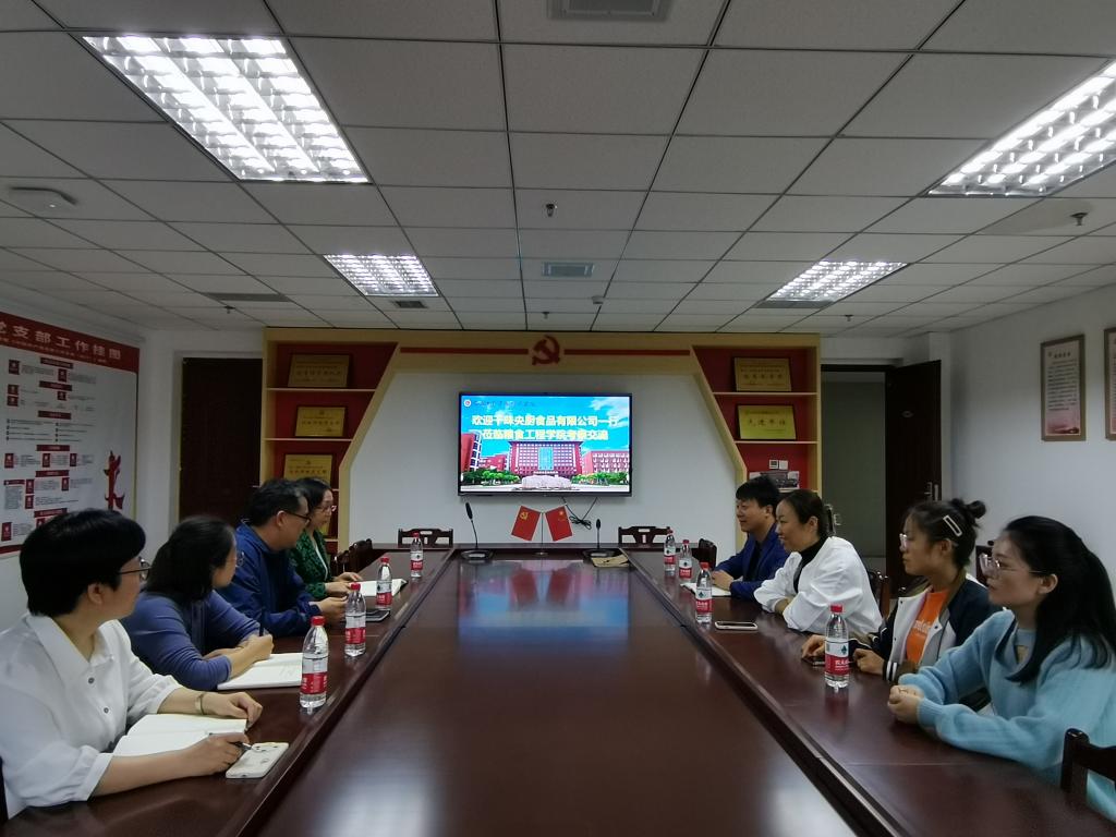 11月3日,新乡千味央厨食品有限公司生产管理经理闫丽、人事经理顾立勇、招工主管郭影影、现场改善专员李慧婷一行4人到我院考察交流。粮食工程工程学院副院长张庆霞、党总支副书记卢宁、食品工程教研室主任刘艳群热情接待,并举办了交流会,学校实验实训中心副主任张作勇参加会议。