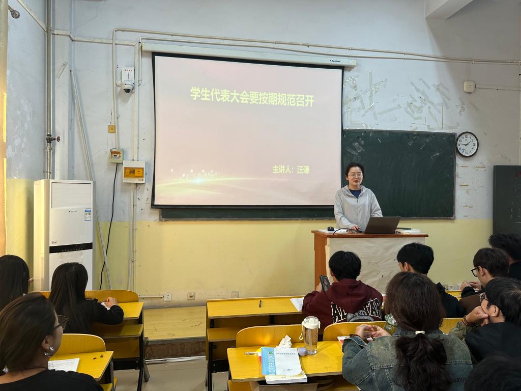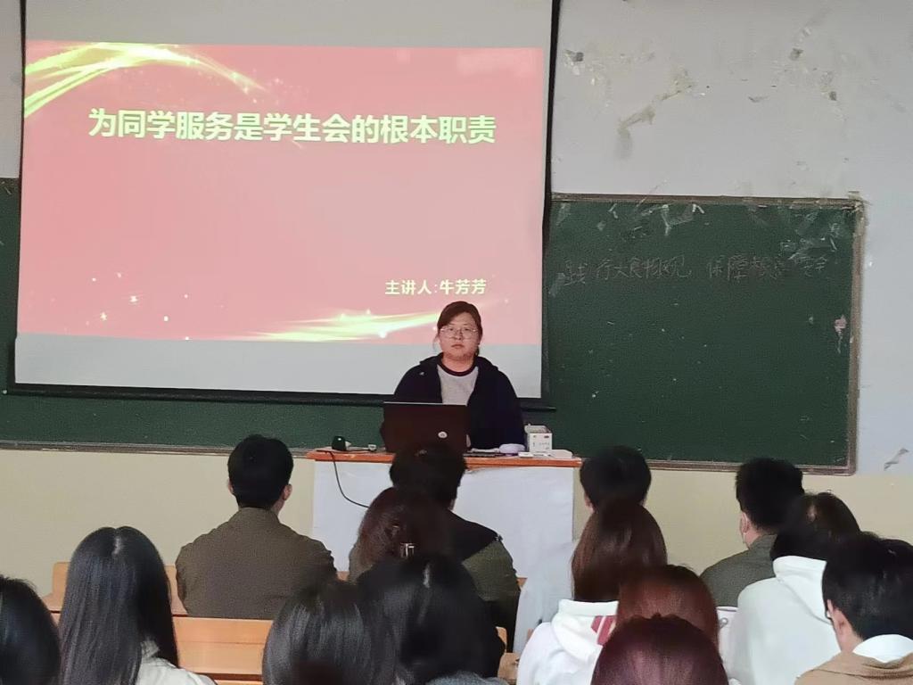 10月24日下午15:00-16:00辅导员牛芳芳向大家分享了培训心得,并带领学生会成员进行了党的二十大精神专题学习和团十九大精神专题学习。并就大学生就业指导、高院学代会规范召开及我为同学做实事等领域向大家进行了讲解。