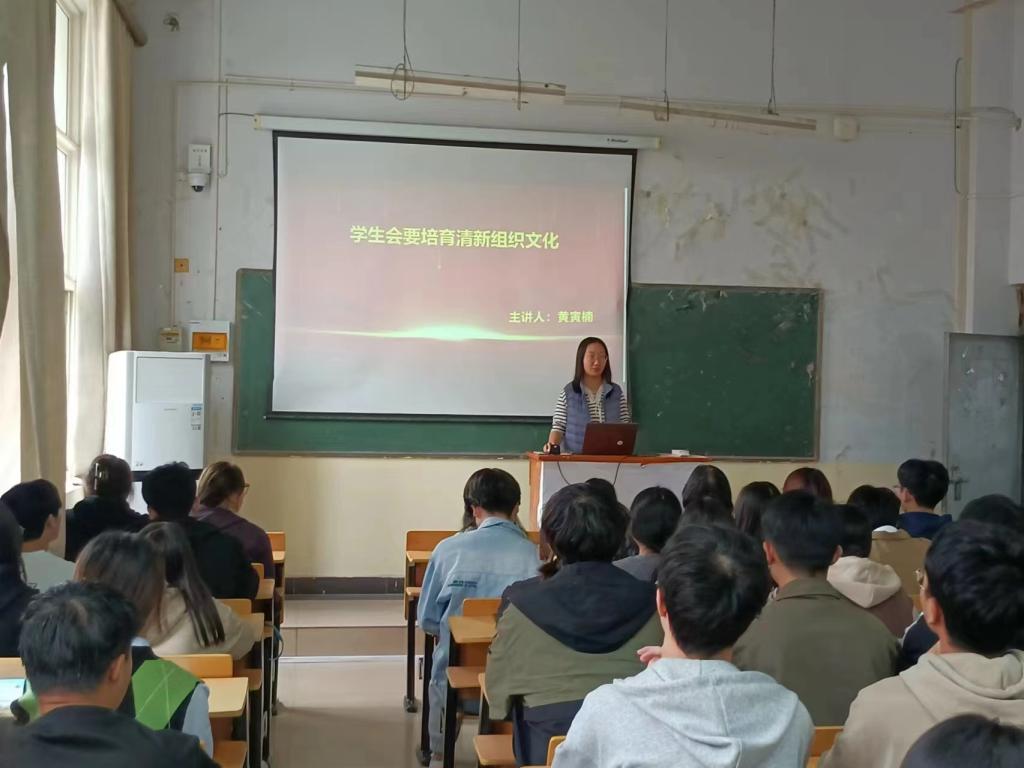 10月30日党总支副书记卢宁以“让青春在强国建设、民族复兴新征程上绽放光彩”为主题为学生会成员展开讲座。讲解青年工作,抓住的是当下,传承的是根脉,面向的是未来,必须从战略层面抓紧抓好。加强对青年的政治引领,培养有理想、敢担当、能吃苦、肯奋斗的新时代好青年。要全面贯彻落实以习近平同志为核心的党中央关于青年工作的决策部署,坚持党管青年原则,努力为青年发展创造良好条件,让青年更积极奋进新时代新征程。