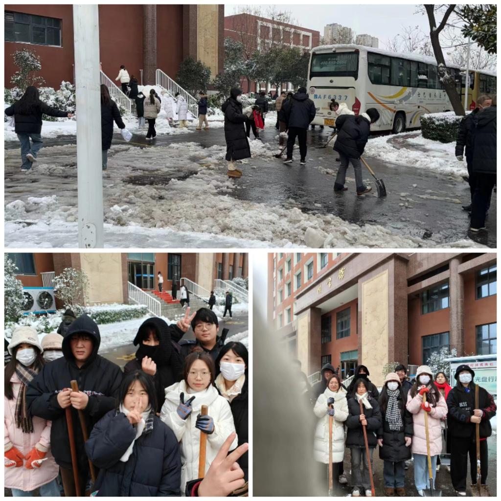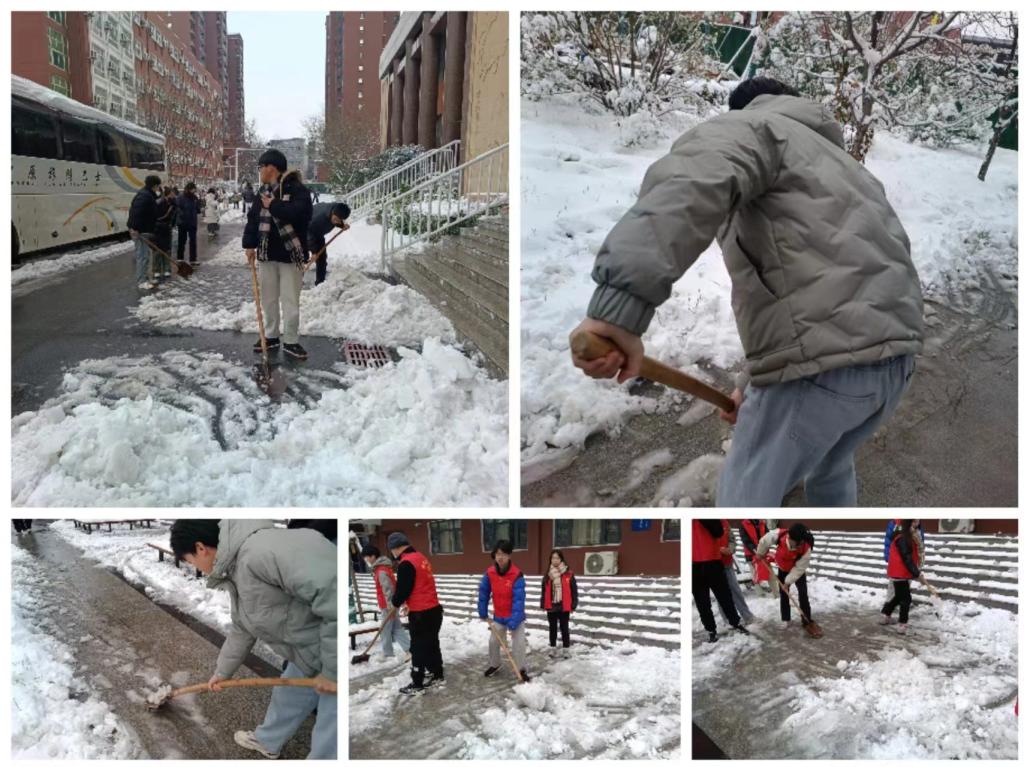 忙碌的身影,构成了一道靓丽的风景线。雪铲与冰雪碰撞的声音,交织成一首悦耳的劳动赞歌!清洁的道路给大家送去的不单单是出行的便捷和安全,更是传递了一份责任与温暖。劳动的过程充满欢声笑语,大家乐在其中。尽管扫雪的工作非常辛苦,但是同学们用自身的热情与魄力克服了困难,以实际行动践行了全心全意为人民服务的宗旨,向党组织靠拢。