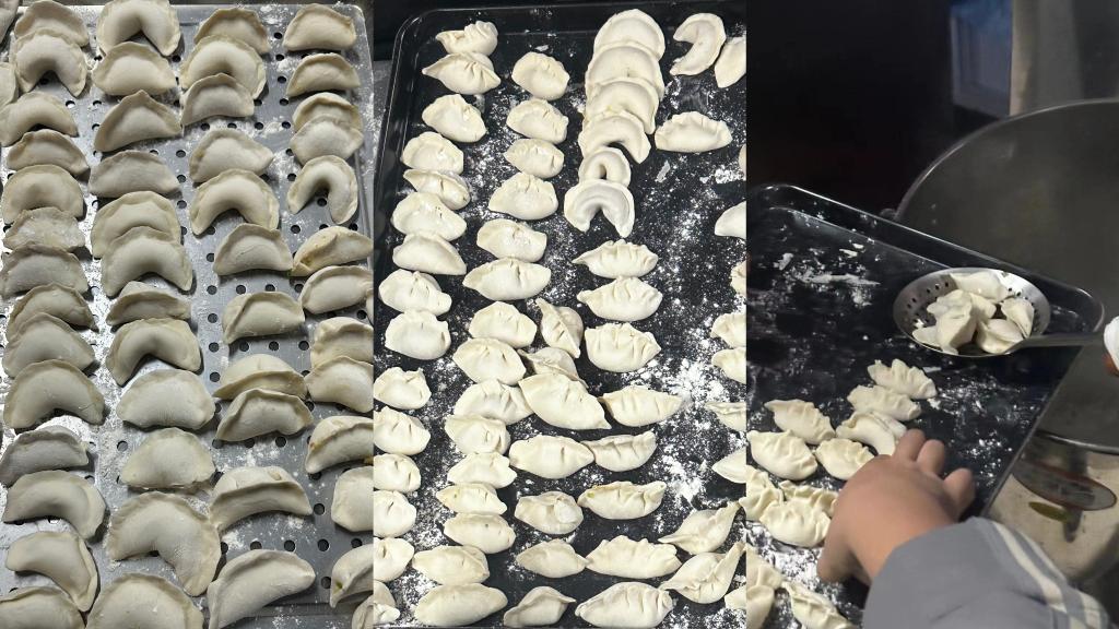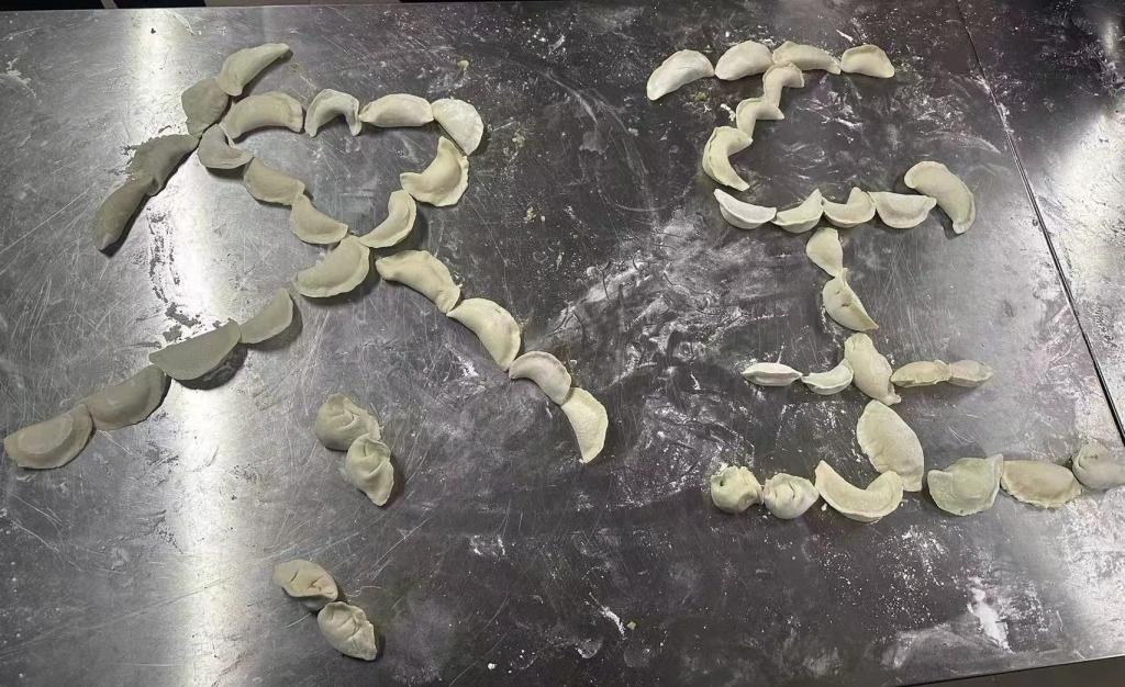 活动中,同学们洗手卷袖,和面、调馅、擀皮、包馅,大家分工有序,馅料一放,两手一捏,一个圆嘟嘟的饺子便做了出来,期间,党总支赵恒昌书记,以及各位领导及老师深入其中与同学们时而探讨经验,时而过招切磋,元宝饺、月牙饺、小锁饺以及柳叶饺等形状不一的饺子摆满了桌面。