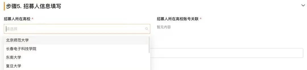 注意事项: 在最后填写招募人信息时,务必选择正确学校(河南工业贸易职业学院),这样中小学生的信息才会进入本校管理后台。