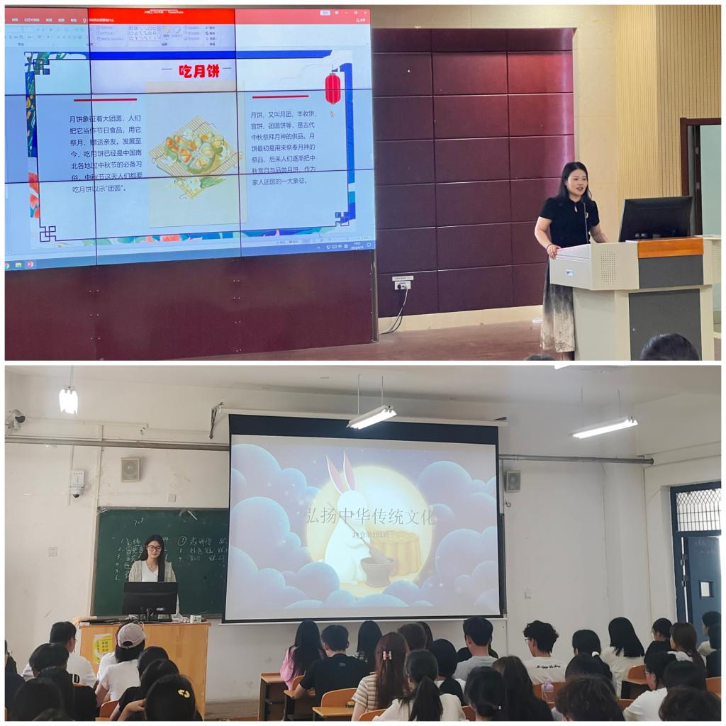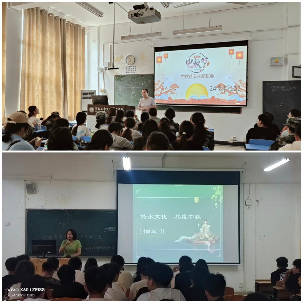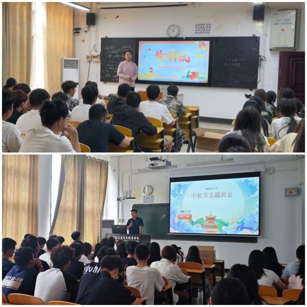 班会伊始,辅导员们首先通过生动的图片和故事,向大家介绍了中秋节的由来与习俗,从文化自信角度,为同学们分享了中秋的经典诗词,如《水调歌头·明月几时有》等,仿佛将大家带入了那个古韵悠悠、月华如练的夜晚,同时也不忘学生安全,叮嘱学生在中秋假日也要注意安全,做好安全工作,让大家度过一个幸福美满的中秋节。同学们聚精会神地聆听,仿佛穿越时空,回到了古老的岁月,感受着那份源远流长的文化传承。