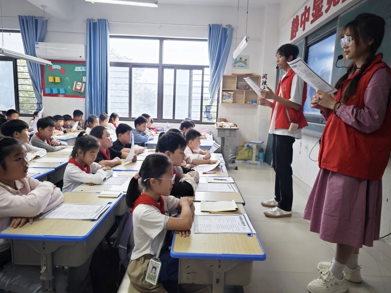 为深入贯彻党的二十届三中全会精神,组织团员青年广泛开展基层学习宣讲活动,进一步加强青少年的爱国主义教育,更好地理解和传承红色基因,珍惜当下生活,根据学校《共青团河南工业贸易职业学院关于做好党的二十届三中全会精神学习宣传的通知》文件要求,结合我院工作实际,院团总支于10月11日下午在红河谷小学开展了红色诗歌第一期宣讲活动。