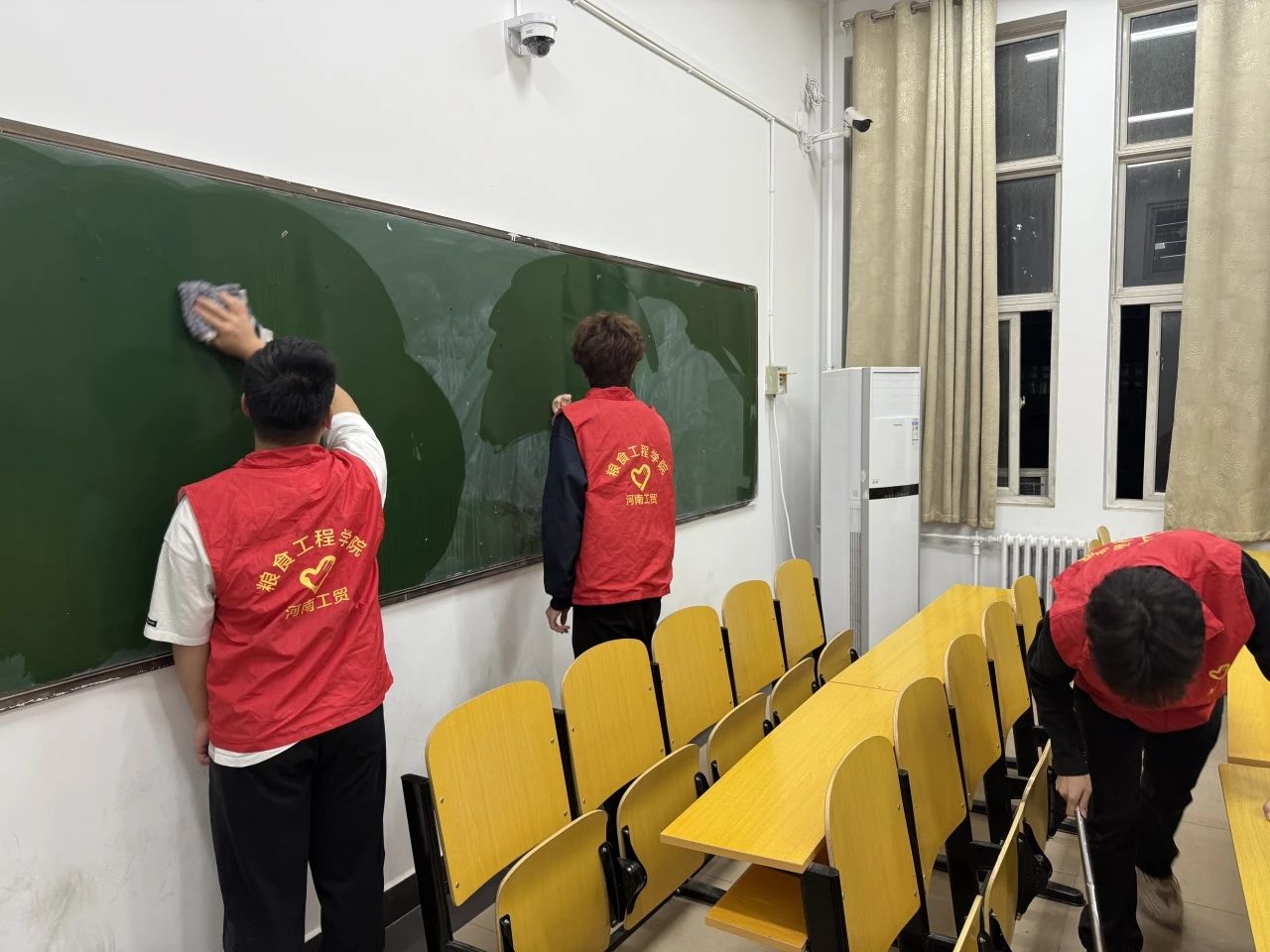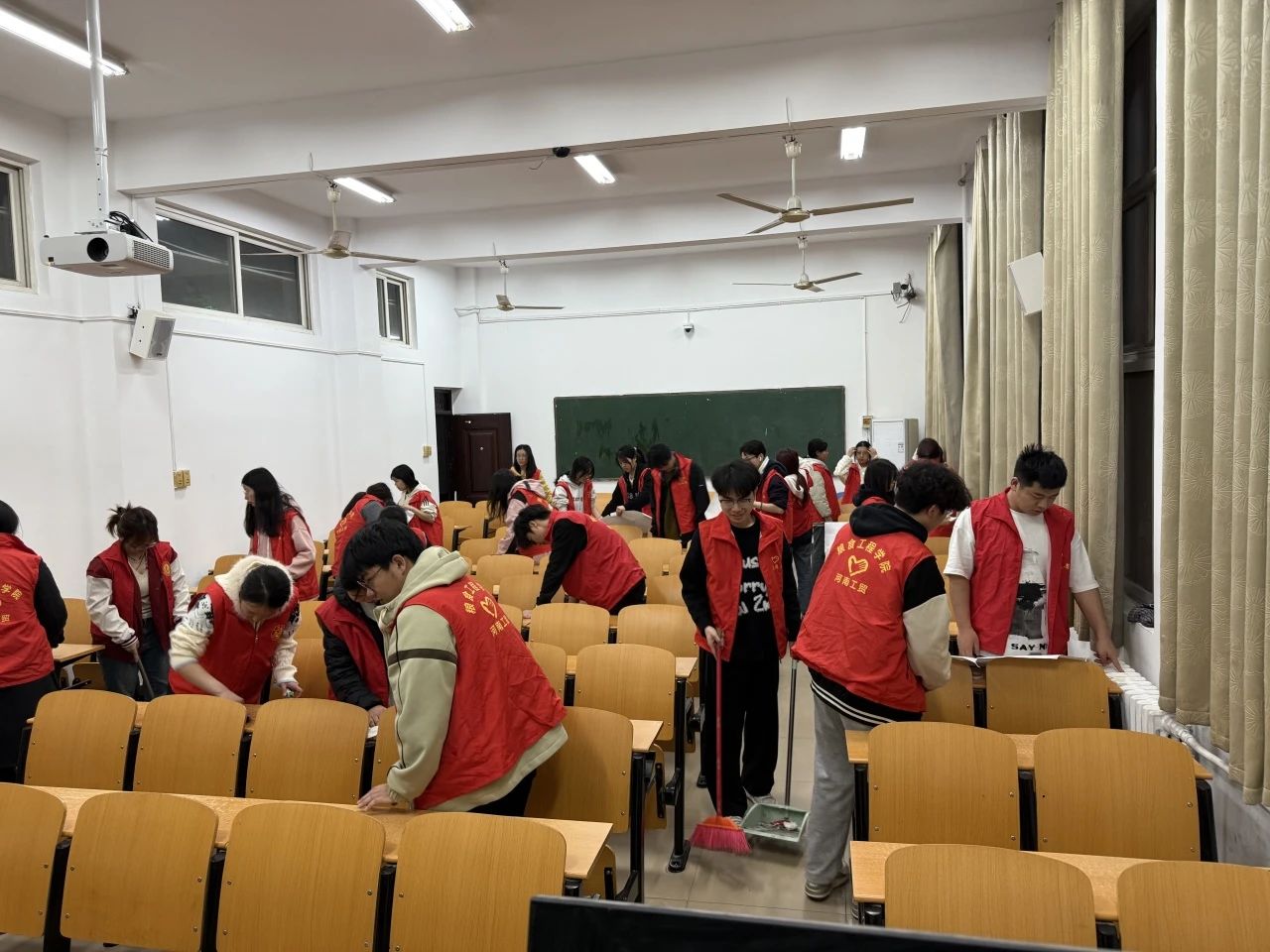 不仅如此,我院还积极开展了专升本教室打扫活动。鉴于我校作为考点,对于专升本考试顺利进行的重要性,众多志愿者纷纷响应号召踊跃报名。活动当天,志愿者们早早抵达,手持扫帚、水桶、抹布等工具,满怀热忱地开启清扫工作。有人俯下身子,用扫帚一点点扫去地面上的纸屑与灰尘,连墙角缝隙都仔细清理;有人用力擦拭着布满灰尘的黑板,确保考试书写时黑板顺滑无阻碍。大家分工明确又相互协作,每一次弯腰、每一下擦拭,都是为这些逐梦者打造优良的考试环境,为这些怀揣梦想的学子们加油打气。用实际行动诠释着雷锋精神中的担当与奉献。