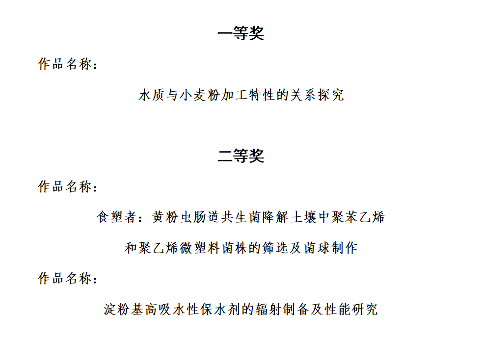 从环境友好的科研项目如“黄粉虫肠道共杆菌降解土壤中聚苯乙烯和聚乙烯微塑料菌株的筛选及菌球制作”,到对粮食作物生长的深入研究“小麦生长现状研究” ,再到食品加工相关的 “水质对小麦粉加工特性及馒头品质的影响研究” 等,充分展现了同学们扎实的专业知识和创新思维。还有聚焦预制菜产业的 “预制菜产业链概述” 以及西瓜种植新技术 “基于吊蔓栽培技术、智能化监控的西瓜生长智能管理” 等项目,令人眼前一亮。