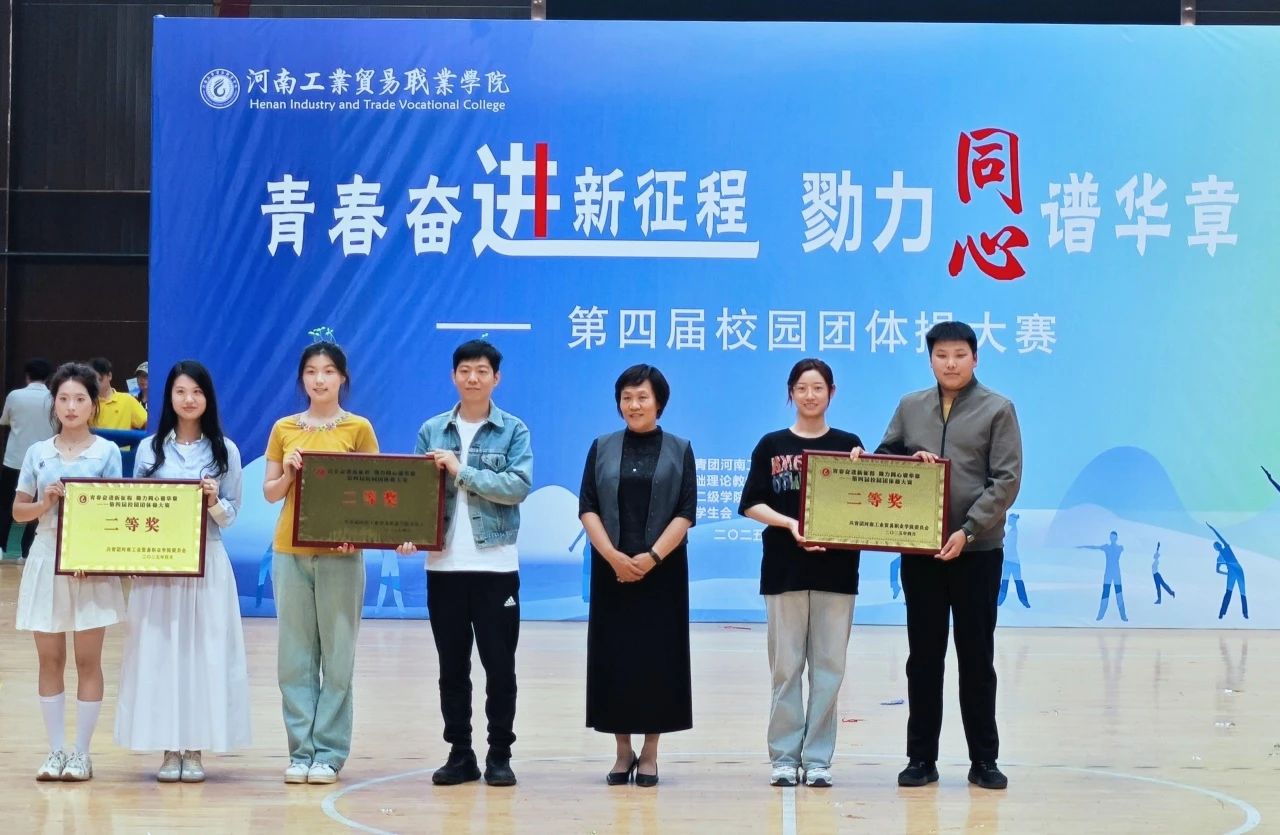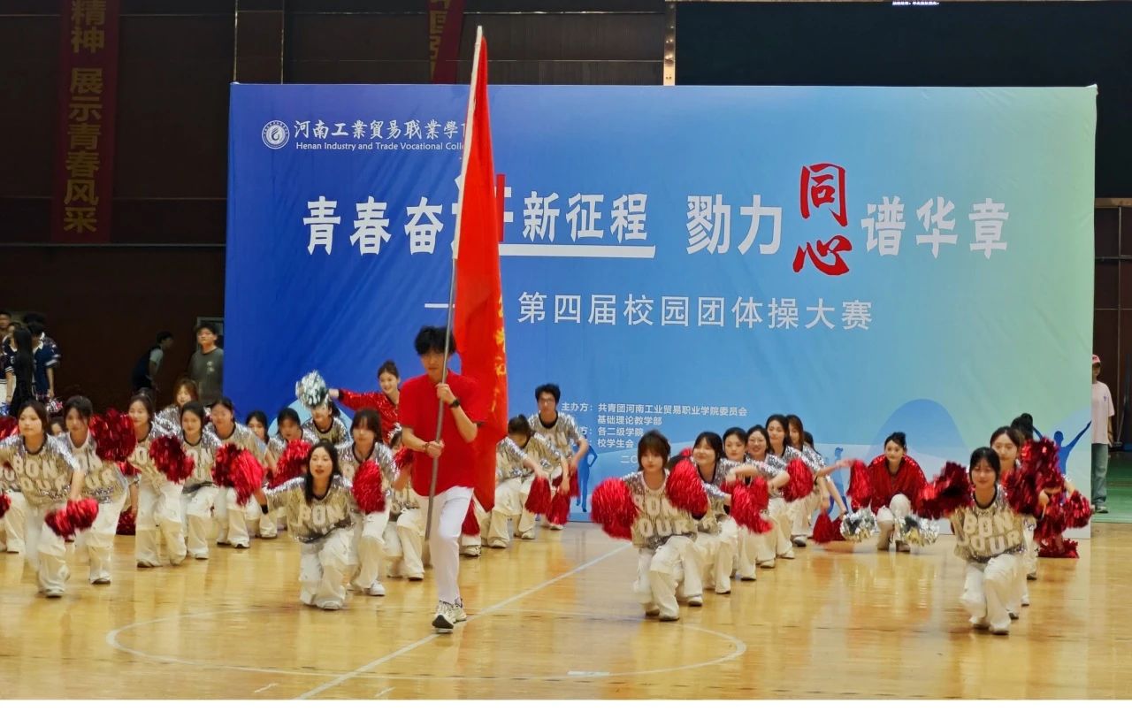 为丰富学生校园文化生活,提高综合素质,增强团队精神与集体凝聚力,展现我校学生积极向上的精神风貌,4月8日下午,河南工业贸易职业学院“青春奋进新征程,勠力同心谱华章”第四届校园团体操大赛隆重举行,由52名我院同学组成的代表队伍参与了此次比赛。
