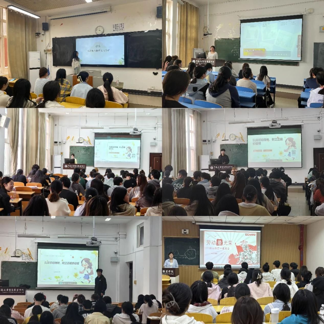 劳动月期间,各班组织本班同学召开劳动教育主题班会。通过多样化班会形式,激发学生劳动热情,让学生深入理解劳动教育内涵与意义,培养正确劳动价值观。班会上,班长们借助图文并茂的 PPT 与生动的案例,为同学们深入讲解劳动的价值与意义。同学们认真聆听,积极参与讨论,纷纷表示对劳动精神有了更深刻的理解,将从身边小事做起,践行劳动精神。