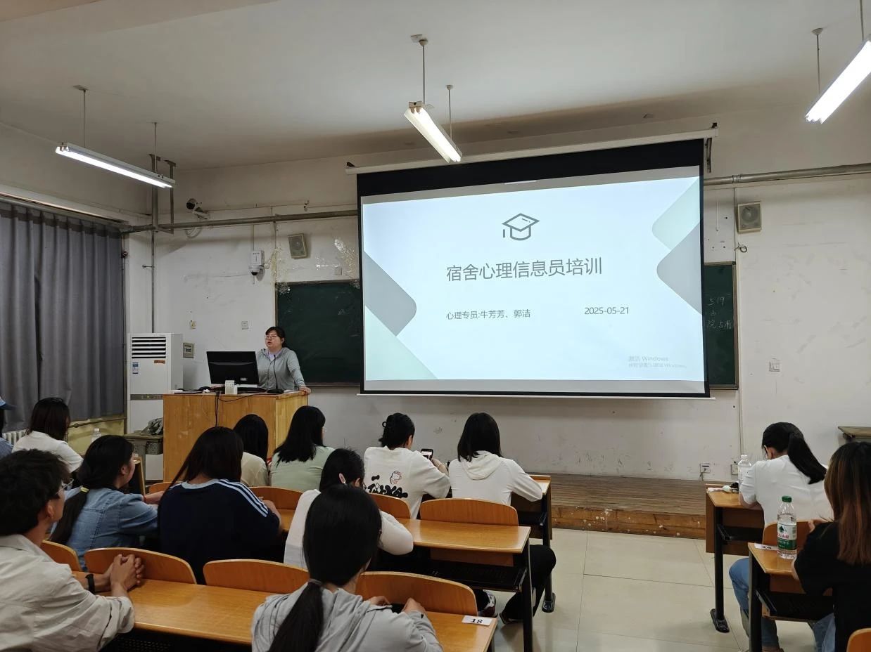 为进一步完善学院心理健康工作网络,提升宿舍心理信息员的专业素养与服务能力,我院于2025年5月22日开展了由心理专员牛芳芳老师、郭洁老师主讲的宿舍心理信息员培训会。