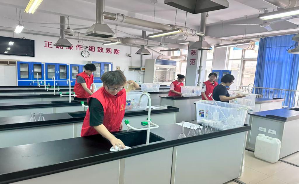 选手们在技能赛道上奋力奔跑的身影,离不开身后一群人用热忱与担当筑起坚实后盾,他们便是培训场上的志愿者。省培期间志愿者们严格按照规程,一丝不苟地清点、整理、擦拭实验器材与耗材,确保每一件物品标签清晰、定位准确、状态完好,为选手们的训练和选拔做好充分准备。当项目需要布置场地或搬运玻璃仪器和设备时,志愿者们迅速响应、分工协作,高效地完成实验所需仪器的清洁、布置等工作,保障了各项流程的衔接。我院志愿者的专注与付出,是技能竞赛各个项目高效推进不可或缺的支持力量。
