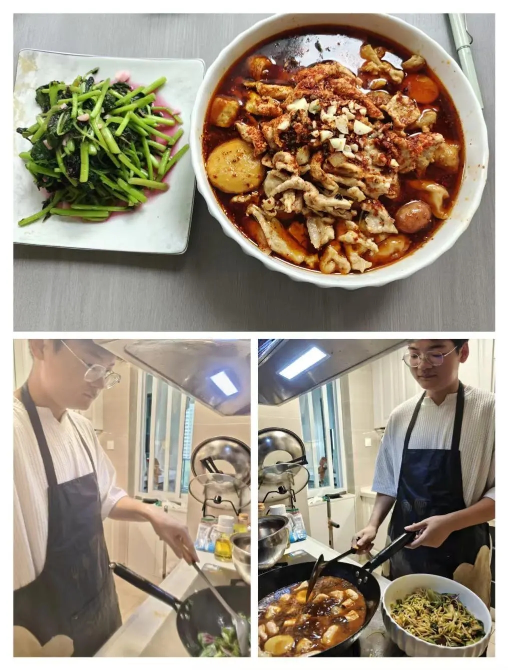 家庭生活技能学习里,学子们收获满满。24食安102班曾海洋投身厨房,开启烹饪成长之旅。跟着父母学做家常菜时,他经历了从切菜手忙脚乱,到调味精准把控的转变。油亮诱人的水煮肉片、清爽鲜嫩的清炒苋菜,成为成长见证,实现从“厨房新手”到“小厨神”的蜕变,在烟火气息里收获劳动的成就感 。