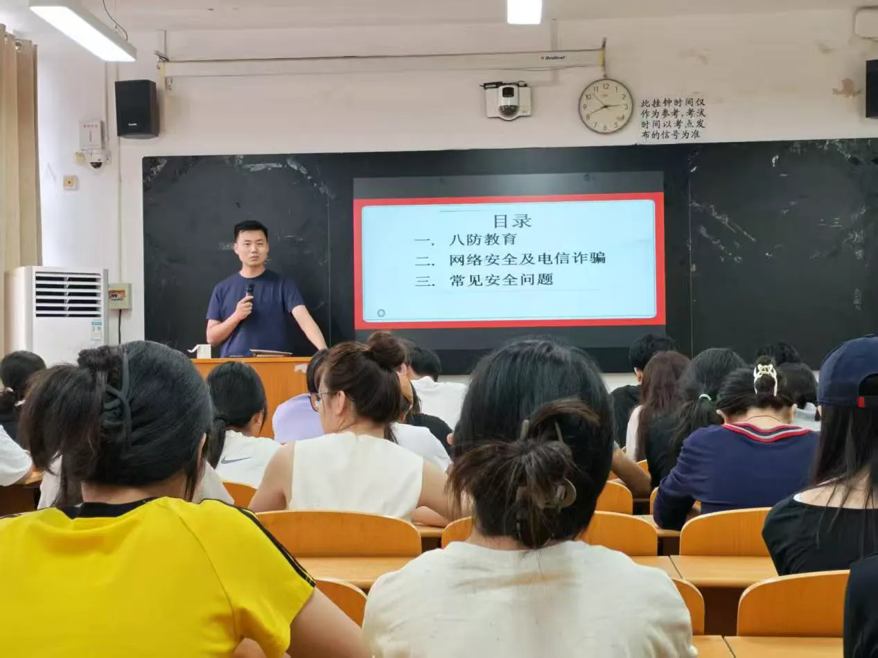 新学期伊始,为帮助25级新生快速适应校园生活,强化安全防范意识,提升应对各类安全风险的能力,我院组织各班级集中开展了开学“安全第一课”主题班会。各班围绕食品安全、防诈骗、交通安全、宿舍安全等核心内容,通过案例解析、规则讲解、互动交流等形式,为新生送上实用的“安全指南”,为新学期校园安全稳定奠定坚实基础。