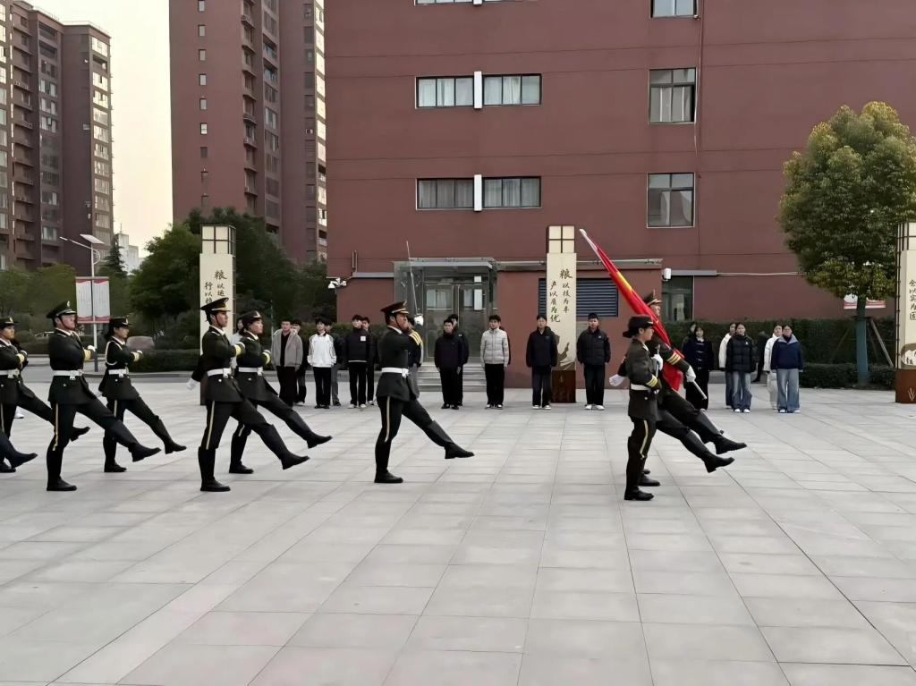 朝阳初绽,学院师生整齐列队,以饱满的精神状态等待仪式开始。国旗护卫队迈着铿锵步伐,护送国旗至旗杆下,随着庄严的《义勇军进行曲》奏响,五星红旗冉冉升起,全体师生向国旗行注目礼,歌声激昂,传递着对祖国的崇敬与热爱。