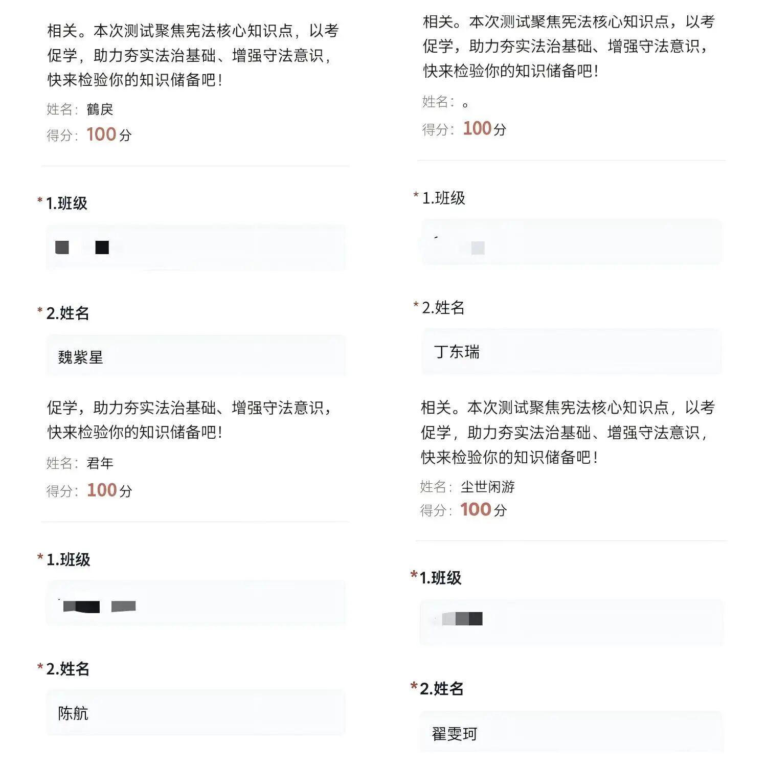 为将理论学习转化为生动实践,我院举办“宪法知识挑战赛”,以“以赛促学、以学践法”为宗旨,采取线上答题形式,便于学生灵活参与。学院广泛动员了911名学生参与答题,同学们在比赛中巩固法治知识,在竞赛中提升宪法意识与运用能力。活动不仅检验了前期学习成效,也进一步激发了学子学习宪法法律的热情,希望我院学子通过此次答题将宪法知识内化于心、外化于行。学院也将以此为契机,持续探索创新普法形式,让法治信仰在青年心中扎根。