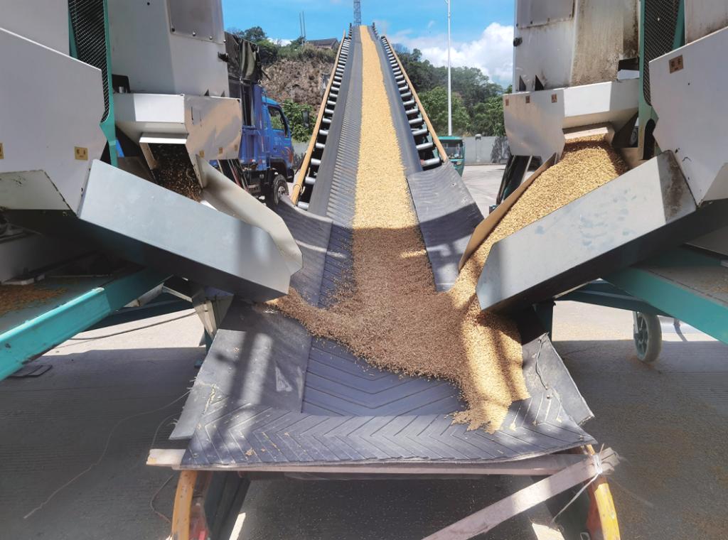 随着“一株一穗”的告白结束,歌曲又进入了下一个叙事单元。这一段落一跃跨入现代,聚焦于现代的粮食流通管理体系,在科技发展的大背景下,今天的粮食储藏转运、质量安全、精细管理等工作,关系千家万户社会民生,像一张结实的网,稳稳地托起了我们的日常生活。词作者避开抒情巧妙地使用对比和拟人,让“低垂的禾谷撑起昂首的粮仓”,“一颗一粒深情讲”,在一高一低、一颗一粒的场景中更添情感上的说服力。从“刀耕火种开拓千古洪荒”的创世气魄,到现代“科学储藏转运城乡”的粮食流通生态,词作者以全景式的笔法,寥寥数句勾勒出粮食数千年的发展轨迹。“日月的精华摆在寻常的桌上”,体现中华民族最崇尚的节约粮食理念和生存智慧,即“珍惜盘中餐,节约继世长”。在全球粮食危机频发、浪费现象严重的当下,爱粮节粮值得每个人去践行。同时,歌曲也借优良传统题中之义,发挥了文艺教化的功能,把粮食安全这一宏大的国家战略和节约粮食的号召,转化为每个人都能感知和参与的生活实践。