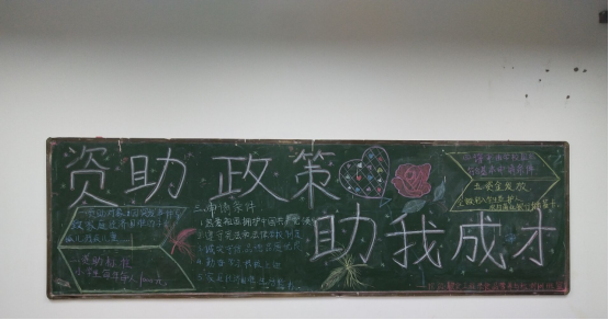本次活动主要配合学院今年的中心工作,以宣传国家学生资助政策,加强大学生诚信、感恩教育为中心,引导全体师生深入学习国家学生资助政策,激励家庭经济困难学生克服困难、自强不息、努力成才。为了让更多的学生了解国家资助政策,结合我院的实际情况开展了资助政策板报设计的比赛,以此来达到广泛宣传的目的。首先我系各个班级再本班做好宣传板报,然后各班级之间进行评比,对优秀的班级板报给相应的奖励。此次我系出的板报主题鲜明,内容丰富多彩、版面构思新颖、布局合理、美观大方,得到了我系相关领导和老师的赞赏。