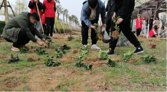 春风拂面,下午四点整,所有参加“义务植树志愿者活动”的志愿者们集合完毕。大家开始了今天的志愿者主题活动——植树。