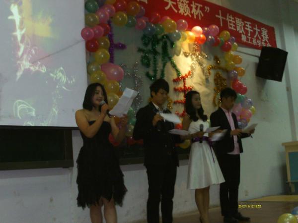 由我系学生会承办的第三届“天籁杯”十佳歌手大赛,于2012年10月15日在我院阶梯教室热烈举行。选手们各自展示自己的风采,为多彩的校园生活增添