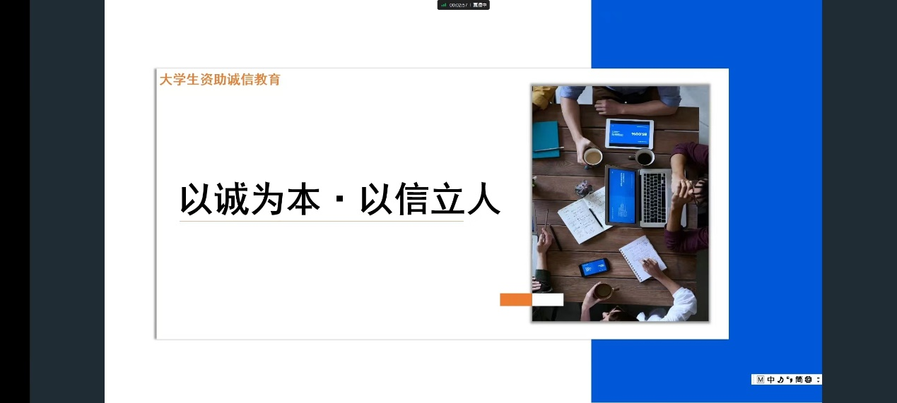 诚实守信,是我中华民族优良传统。千百年来,人们讲求诚信,推崇诚信。为进一步培育大学生诚实守信意识,增强其社会责任感和使命感,我院以班级为单位组织了以“诚信还贷”为主题的班会。班会旨在提高同学们的诚信意识,让同学们守诚信。