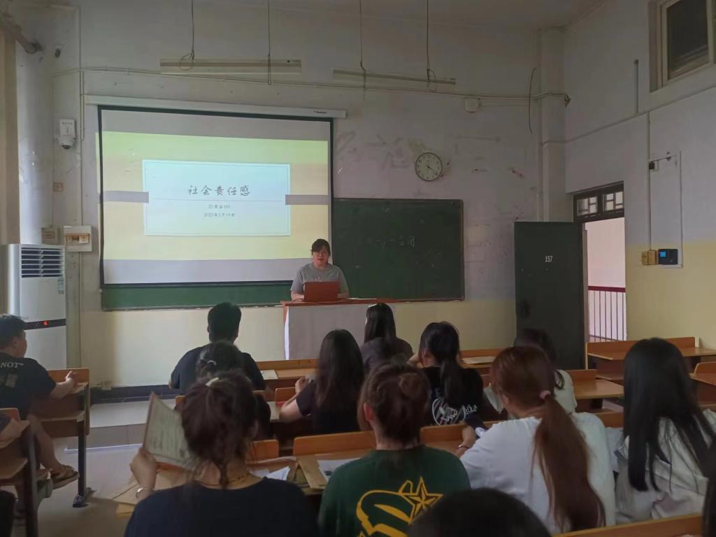 主题班会上,辅导员老师通过PPT的展示,明确大学生的社会责任,就如何结合自身学习和生活践行并提高自己的社会责任意识和能力等问题进行总结,并鼓励同学们要认真规划自己的大学生生活,树立崇高理想,努力提升自己的人生价值。