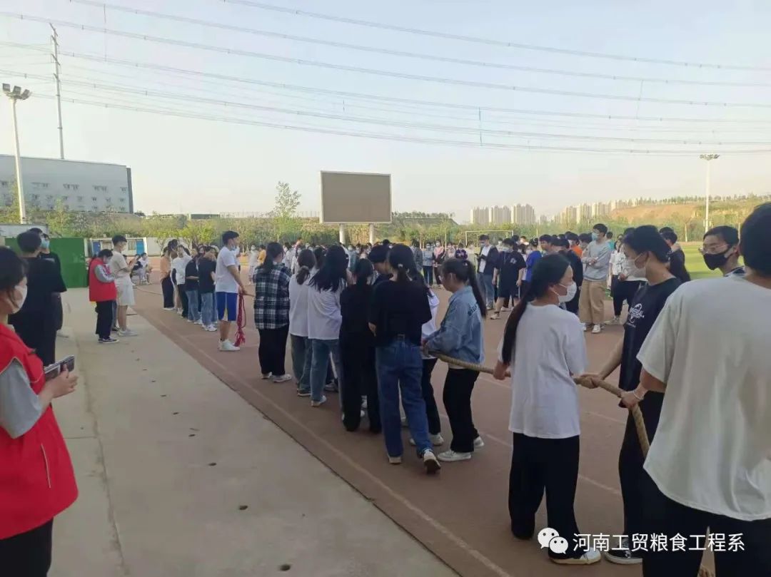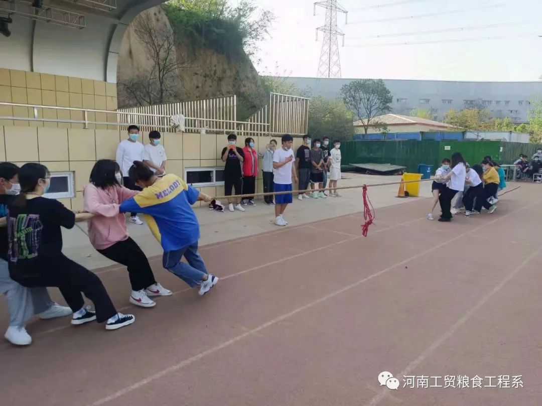2022年4月10日,粮食工程学院的拔河比赛在河南工业贸易职业学院的操场上举行,此次活动,粮食工程的各个专业的20级、21级同学们积极参加。