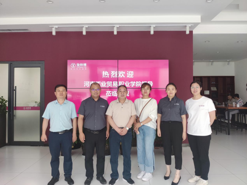 为了提高我院2021年毕业生就业质量,拓宽就业渠道,搭建校企合作良好交流平台,2021年6月16日,汽车工程学院院长周建仁、副院长张清郁、汽车检测与维修教研室主任田萌一行前往兔师傅汽车维修有限公司河南运营中心(以下简称兔师傅)考察调研。兔师傅河南运营总经理王真、豫北站区总监廉绵、校企合作经理李凯给予了热情接待。