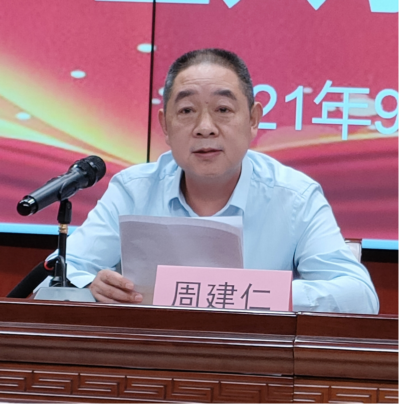 周建仁首先对2021级581名新同学致以最诚挚的祝贺和最热烈的欢迎,他讲到今天将会是各位同学值得珍藏一生,具有里程碑意义的时刻,因为从此以后你们将是大学的一分子,由此站在人生的新起点,开启一段新的人生旅程。为此,他给同学们提出五点希望:一要爱党、爱国,听党话、跟党走,感党恩;二要爱学习;三要爱同学;四要爱名誉;五要爱身体。始终秉持“强能修远,精益求精”的理念,以不懈奋斗的精神状态、乐观向上的人生态度,书写青春,绽放光芒,成为为中国特色社会主义事业奋斗终身的有用人才!
