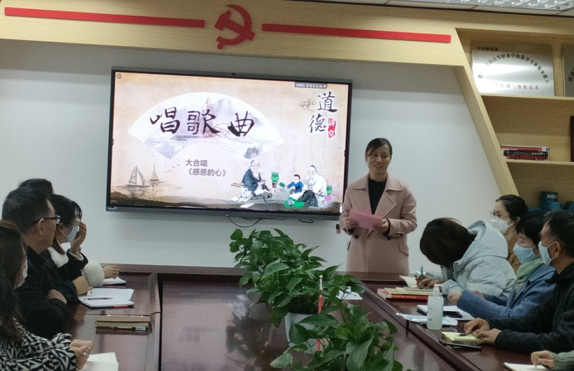 歌声传播道德,文明永驻心间。在“唱歌曲”环节,大家共唱《感恩的心》,这首歌唱出了教师的的心声,唱出了教师的精神。