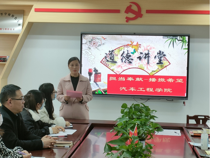 为全面贯彻习近平关于教育的重要论述和全国、全省教育大会精神,全面加强和改进新时代师德师风建设,11月9日下午,汽车工程学院组织全体教师开展了以“担当奉献,播洒希望”为主题的道德讲堂。活动以“教师宣誓、唱歌曲、学模范、诵经典、谈感悟、向德字鞠躬”六个环节开展。