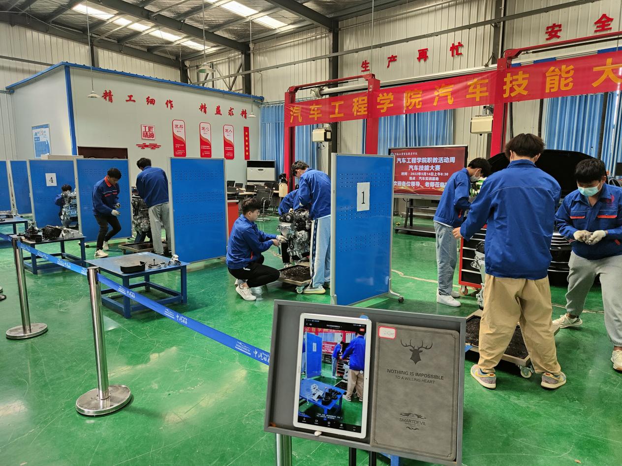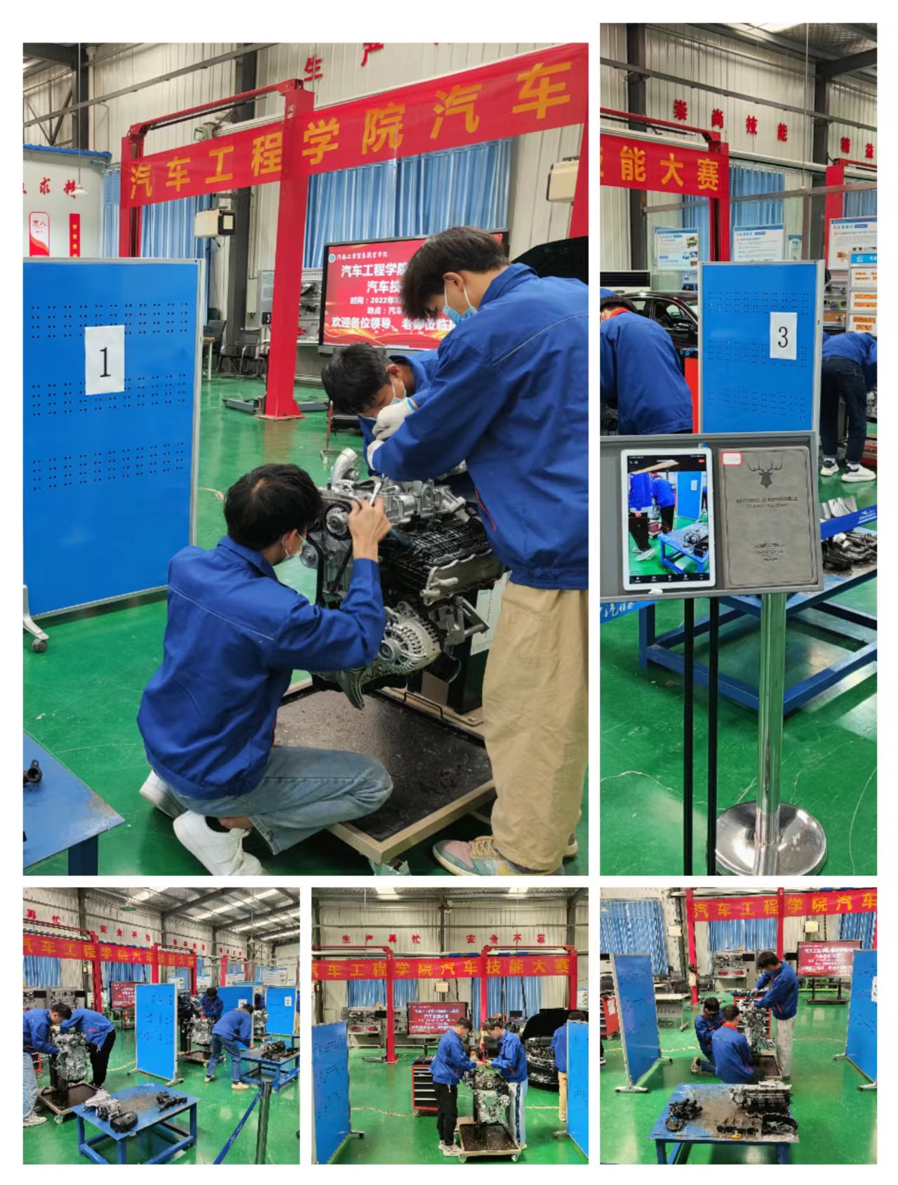 本次比赛项目主要是EA211发动机气门室盖、汽缸盖、正时皮带的拆装及气缸检测。覆盖2020级、2021级汽车制造与试验技术、汽车检测与维修技术、新能源汽车技术等五个专业。