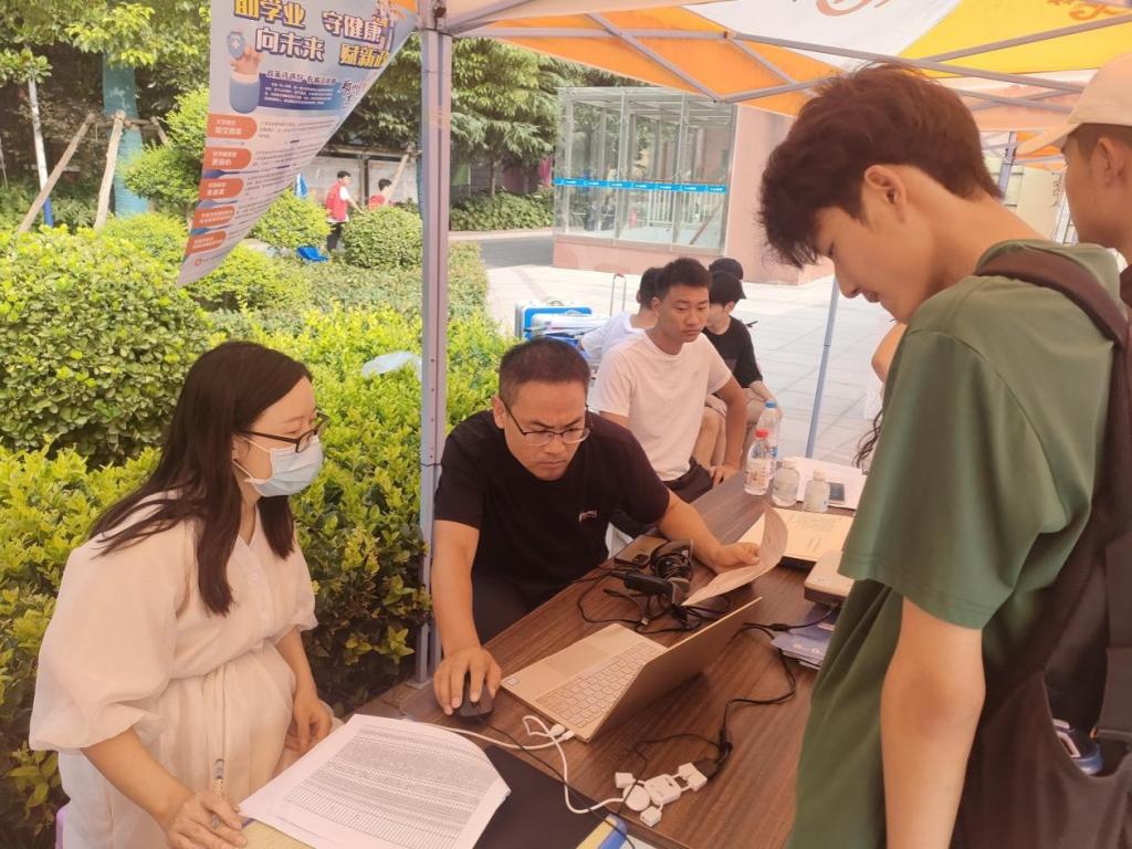 新生信息核查组的老师们认真核验学生信息,及时办理入学登记、宿舍分配,热情介绍入学须知,新生按照要求办理报到手续,工作紧凑而有序。