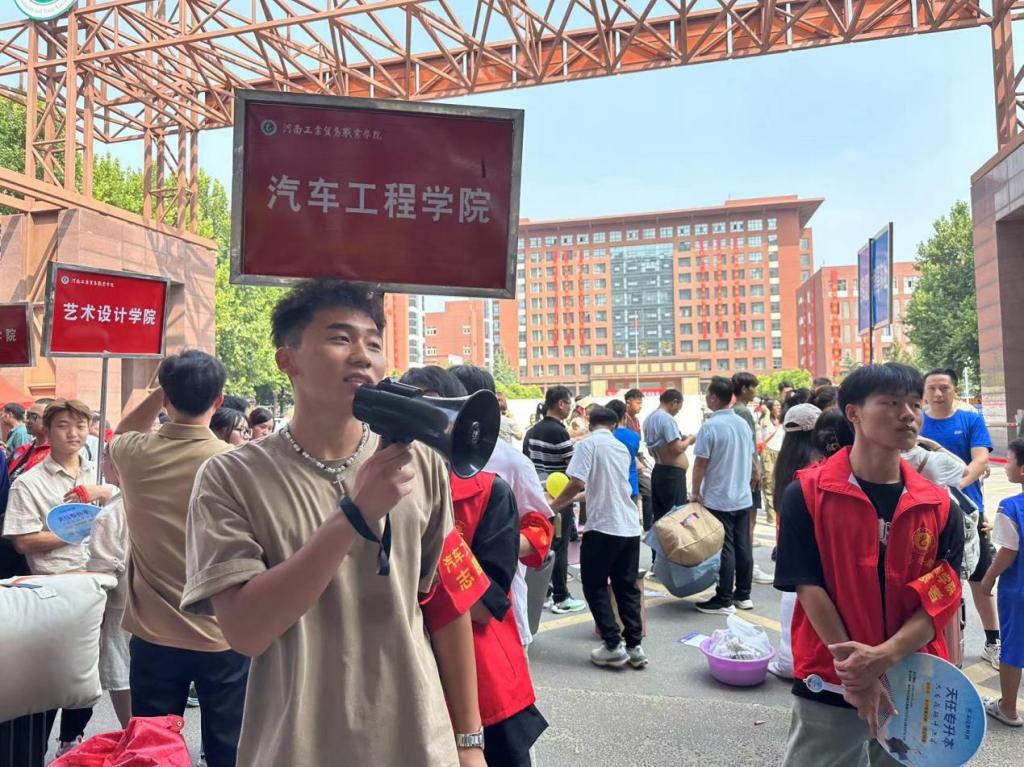 志愿者服务组在校门口设立迎新点,志愿者高举学院标识牌,引导新生、搬运行李,安排专人带领新生办理报到手续,为新生介绍学校环境、宿舍管理的相关规定和校内食堂、体育馆、教室等学生常去的场所,让新生尽快熟悉新环境,在新校园里找到家的温暖。