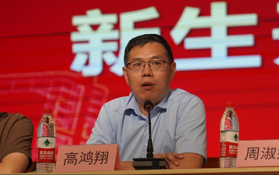 高鸿翔首先对新生的到来表示热烈欢迎,同时也对大家开启人生的新征程表示衷心的祝贺。高书记向同学们详细的介绍了学院的发展历程、专业设置,并勉励大家要刻苦学习,在大学期间守好规矩,做好规划,树立远大的理想,坚定信念,在实践中不断砥砺前进,在大学遇见更好的自己,在奋进中磨练更好的自己,在坚持中成就美好的人生。