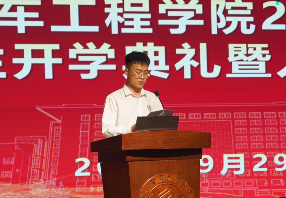 教师代表王国彬进行发言,承诺要率先垂范、因材施教,鼓励新生积极参加技能竞赛。22新能源106班王云鹏代表在校生鼓励新生要勇于尝试、挑战自我,学会合作、共同成长。24汽修102班蒋欣欣代表新生发言表态,承诺要树立远大目标,坚定理想信念,争做德才兼备、不懈奋斗、忠诚担当的汽车人。