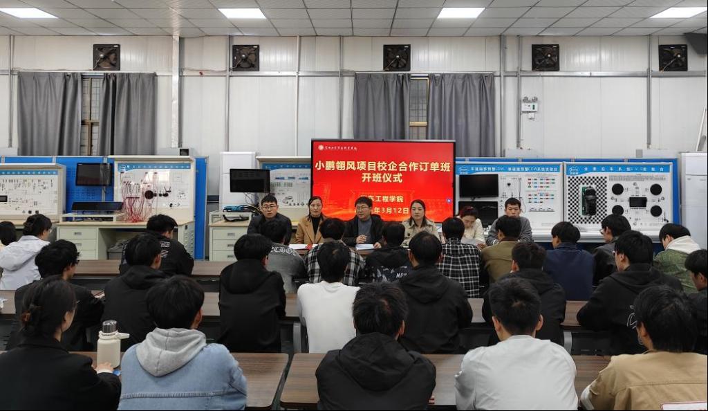 3月12日,汽车工程学院与小鹏汽车携手共办的“2025年小鹏翎风项目校企合作订单班”开班仪式,在汽车工程学院实习工厂隆重举行。汽车工程学院副院长苏超杰、副书记陈冰赛及学院师生齐聚一堂,共同见证这一重要时刻。仪式由汽车工程学院副院长周淑娟主持,现场气氛热烈而庄重。