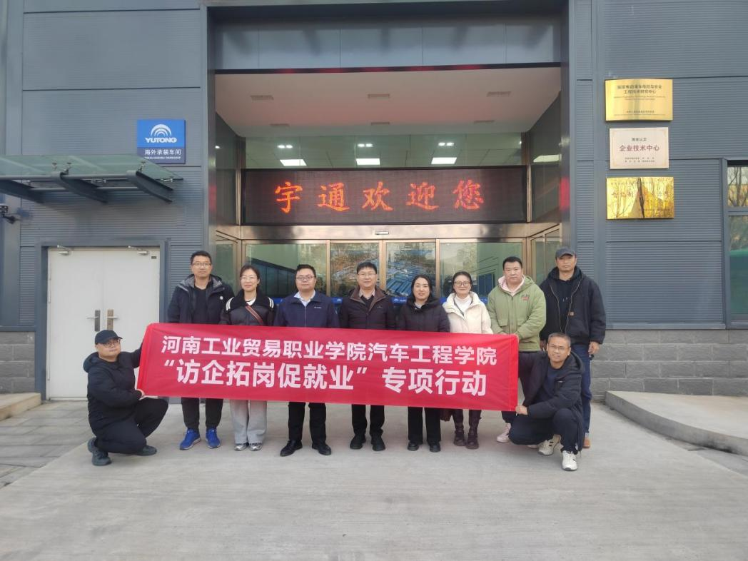 为深入贯彻落实产教融合、校企合作育人理念,精准对接行业龙头企业用人需求,拓宽毕业生就业渠道,同时切实关心关爱一线实习师生,2025年12月17日,由汽车工程学院院长苏超杰、党总支书记陈冰赛、党总支副书记雒廷、副院长宋芳、办公室主任蒋帅等组成的走访慰问组,先后赴上海汽车集团股份有限公司乘用车郑州分公司、郑州宇通集团有限公司、郑州深澜动力科技有限公司开展访企拓岗暨实习师生慰问活动。