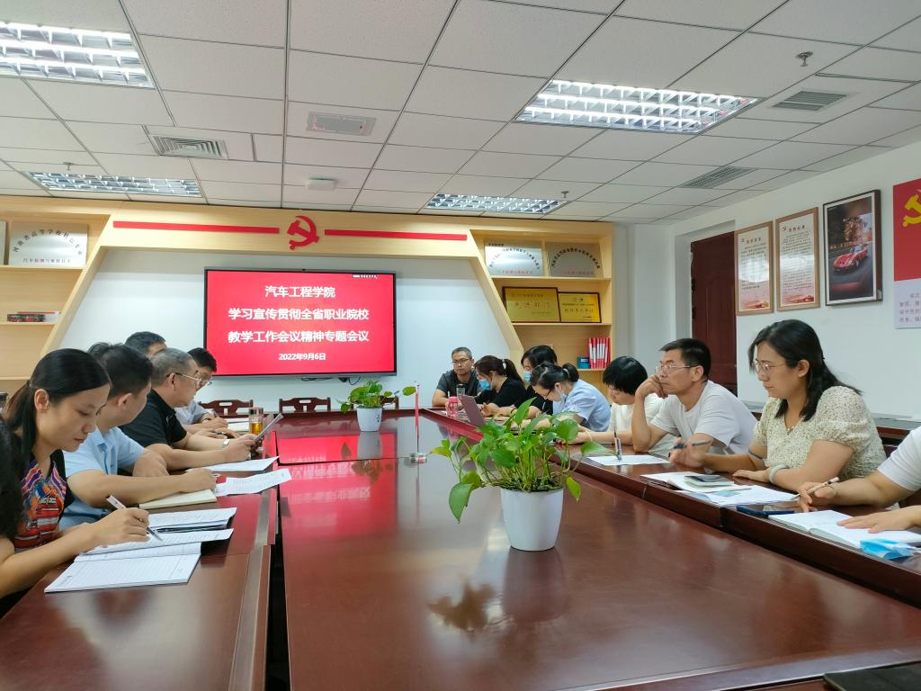 为深入学习宣传贯彻全省职业院校教学工作会议精神,切实做好学院各项教育教学工作,9月6日下午,汽车工程学院在图书馆B9005会议室召开了学习宣传贯彻全省职业院校教学工作会议精神的专题会议,集中学习宣传贯彻落实全省职业院校教学工作会议精神。汽车工程学院全体教职工参加会议,会议由院长周建仁主持。
