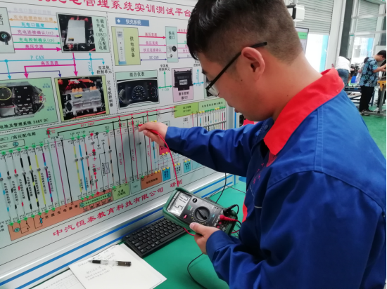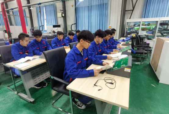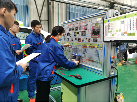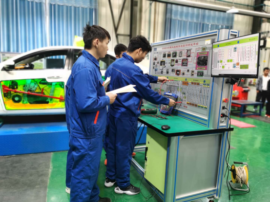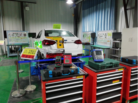 汽车工程学院实训基地为国家级、省级特色项目实训基地,建筑面积1200平方米,设备总值近1200万元,下设7个实训室(基地):新能源汽车实训室、汽车综合检测与维修实训室、智能网联汽车技术实训室、汽车车身构造与维修实训室、汽车底盘构造与维修实训室、汽车车身修复实训室、汽车VR实训室。我院与郑州宇通客车股份有限公司、河南省委机关汽修厂等数家知名企业开展“校企合作,产教融合”深度合作,推进校外实训基地建设,围绕专业共建、课程共担、教材共编、师资共训、基地共享方面不断创新实训模式,通过“走出去,引进来”、“厂中校”、“订单培养”等方式对我院汽车检测与维修技术、新能源汽车技术等专业学生开展实习实训。同时,我院为1+X证书汽车运用与维修、智能新能源汽车职业技能等级培训考核优秀试点,在区域内职业院校中起到了引领示范作用。