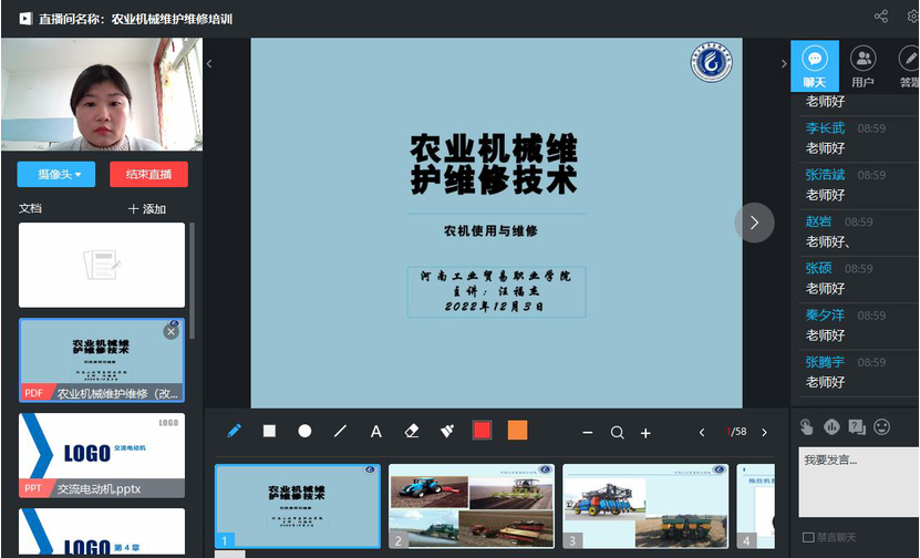 图1 汪福杰老师线上培训——农业机械维护维修技术