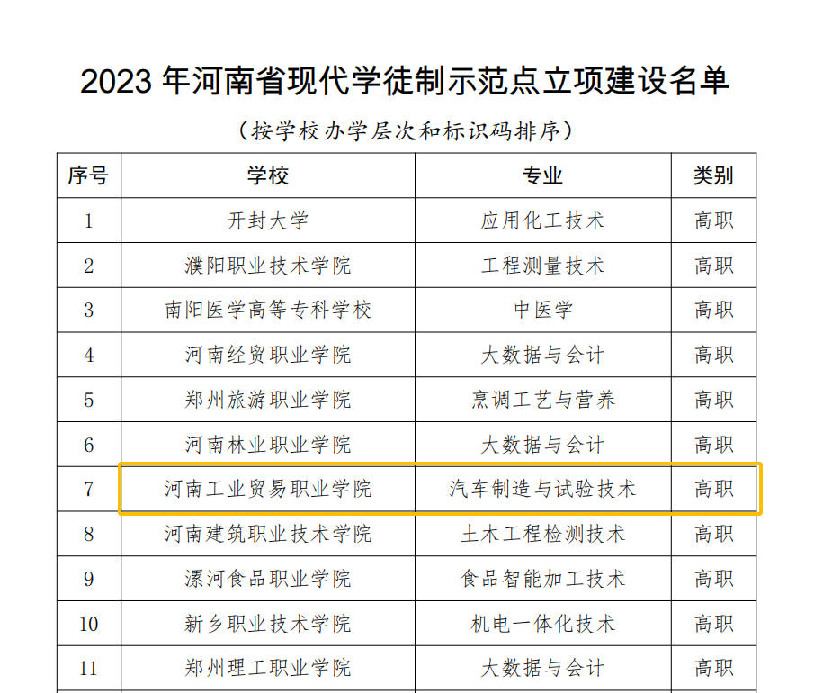 2023年获批河南省现代学徒制示范点建设单位。
