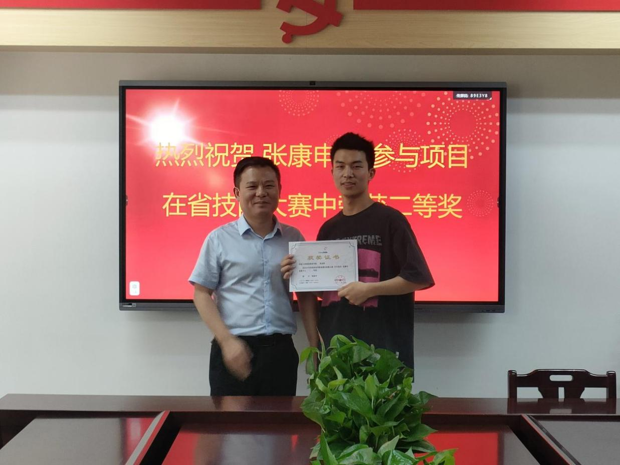 张康申同学领取获奖证书