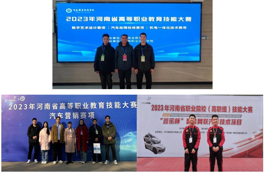 ✭12月上旬,由河南省教育厅主办的2023年河南省高等职业教育技能大赛“汽车故障检修”赛项、“汽车营销”赛项、“智能网联汽车技术”赛项。我院5支参赛队取得了2个一等奖,3个二等奖的成绩,全部客场获奖,其中1支参赛队获得国赛参赛资格。